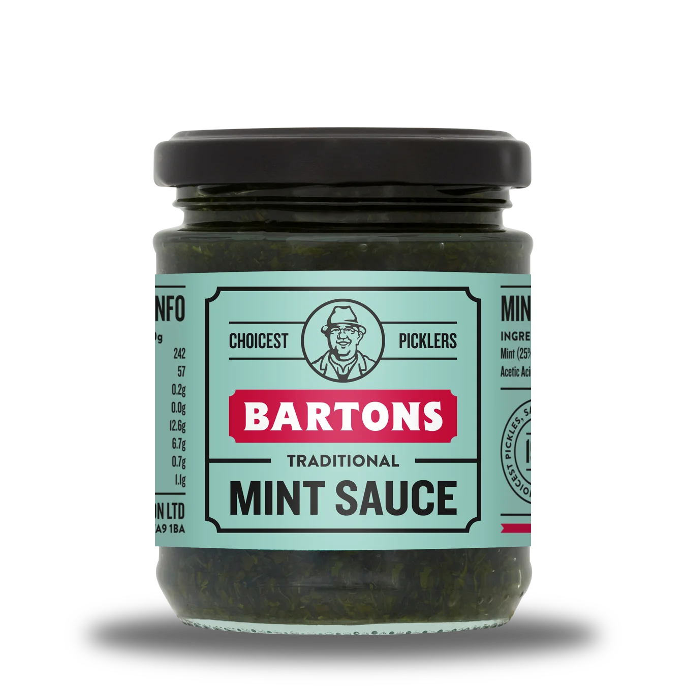 Bartons Mint sauce is a sauce traditionally made from finely chopped dried mint leaves, soaked in vinegar and sugar. The sauce is thick and should have the consistency of yogurt. It is traditionally used as a complement to roast lamb or other lamb dishes.