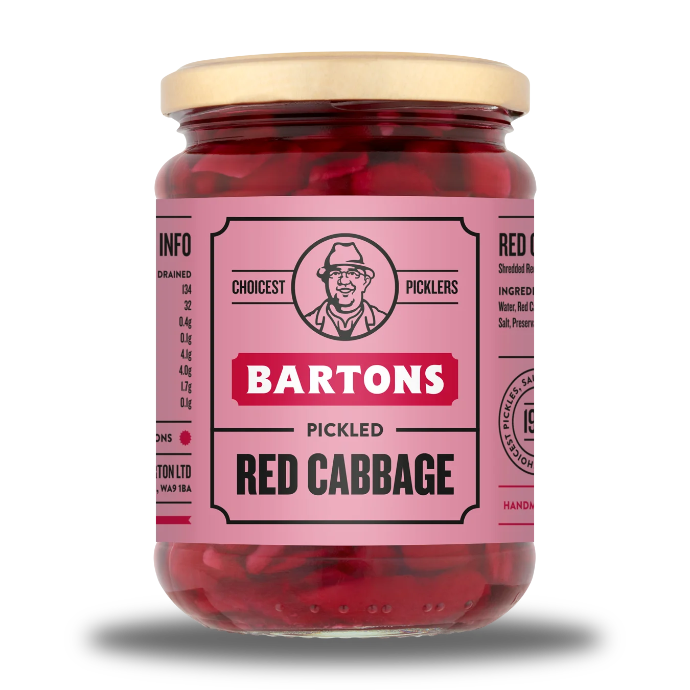 Bartons Pickled Red Cabbage is another very typical traditional Pickle consisting of shredded red cabbage, pickled and preserved in vinegar and salt.