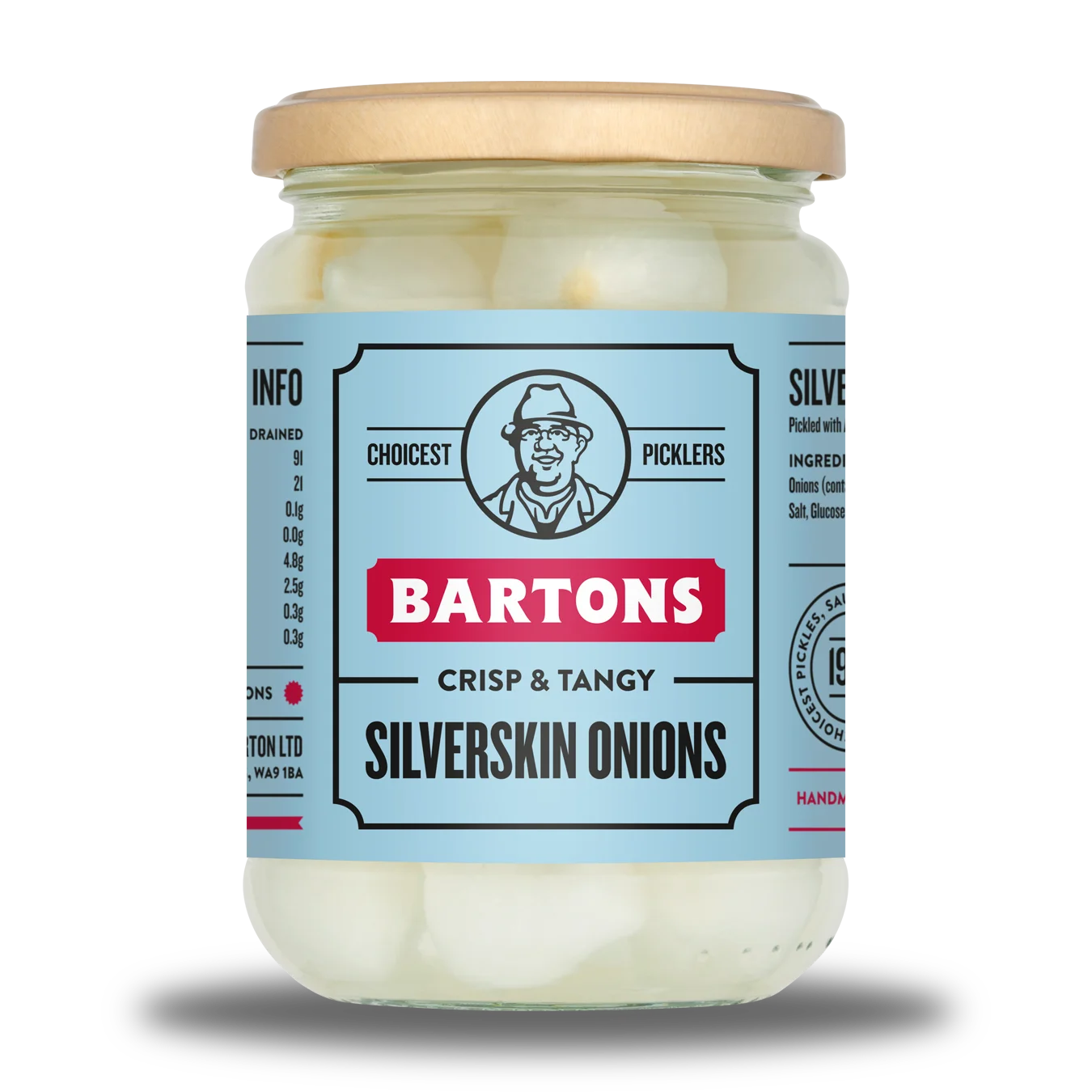 Bartons Silverskin Pickled Onions in Vinegar is a pickle of onions preserved with vinegar and salt.
